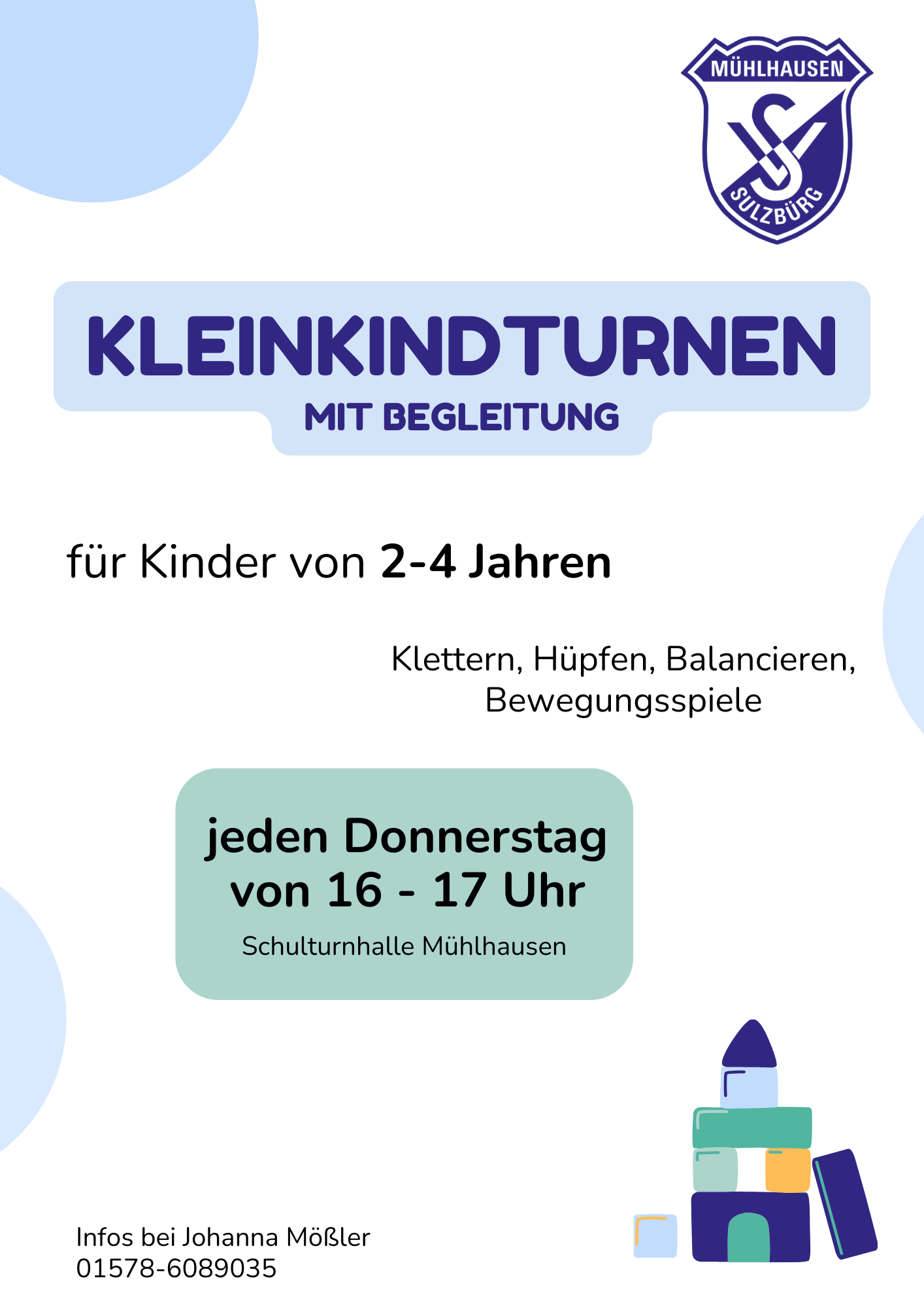 Donnerstags von 16.00 – 17.00 Uhr in der großen Schulturnhalle in Mühlhausen