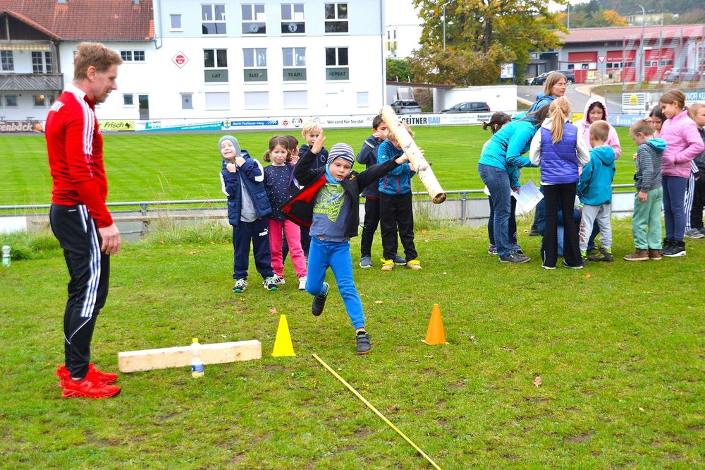 Danach gings ins Freie, um die Wurf- und Laufdisziplinen zu absolvieren. Wer dachte, jetzt kommt etwas mit Schleuderball oder so, hatte sich geirrt. Toss, die traditionelle schottische Sportart Baustammwerfen, war angesagt. Die Methoden waren vielfältig das Gelächter der Kinder laut und die Ergebnisse spektakulär.